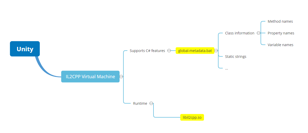 In IL2CPP mode, the Unity engine can convert game C# code into C++ code, which is then compiled into native code for various platforms. This approach increases the difficulty of reverse engineering/decompilation to a certain extent.