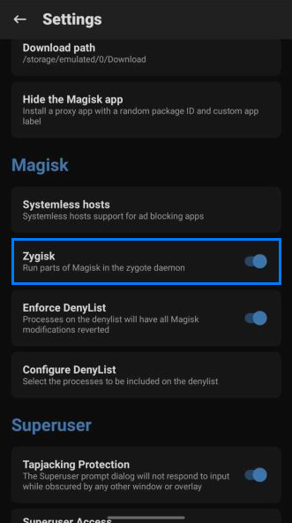 Although the Magisk Hide feature has been removed in the current version, Magisk can still be hidden through other means, such as the new feature ‘Zygisk’.