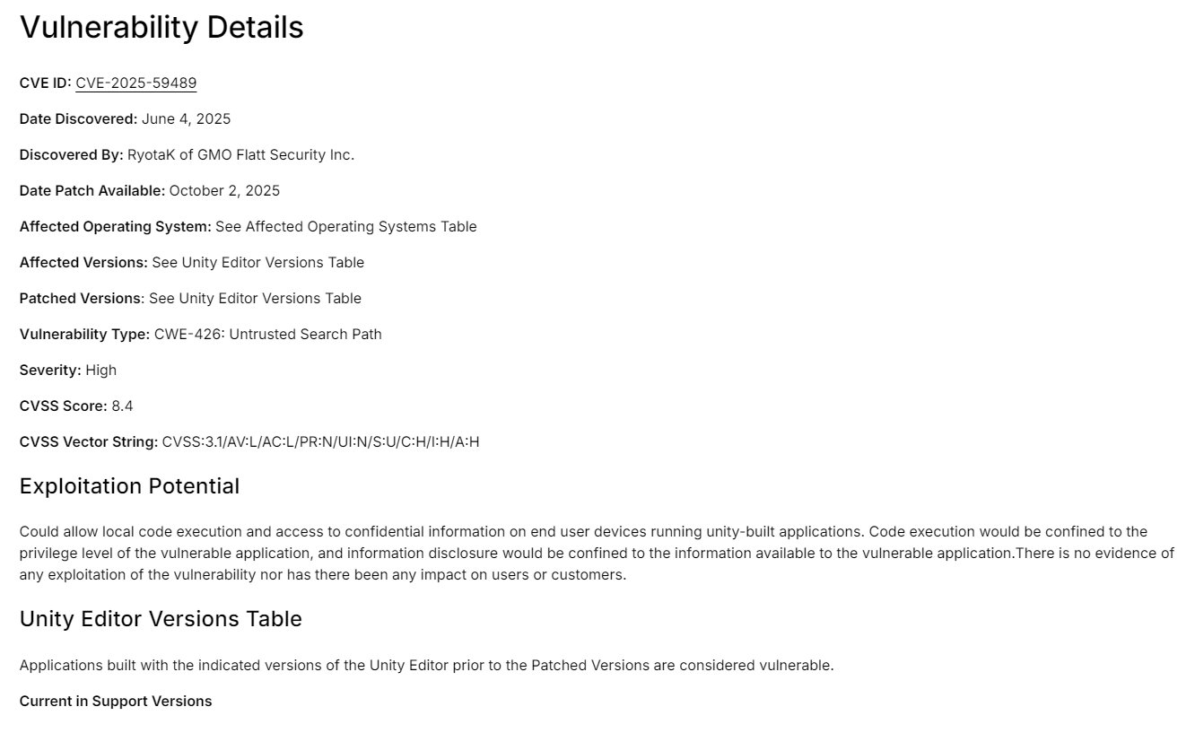 Official Vulnerability Description: https://unity.com/cn/security/sept-2025-01
