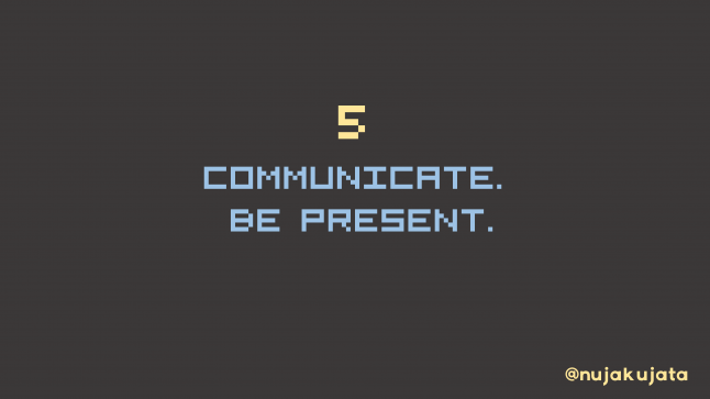 It doesn't matter what your role is, speak up, ask questions and be present. Dealing with conferences? People? Networking? If it helps, establish Agile/Scrum-like meetings at work or school. Find what works best for your team. Nothing to report? That is fine, but keep things going and make sure meetups are regularly advertised. People will be there. People will be present if they know it is happening with or without them. You will be surprised at how easy it is to talk to someone who worked on your favorite game. You will be just as surprised to find a ton of potential in someone looking to get into the industry who happens to love a project you contributed to.