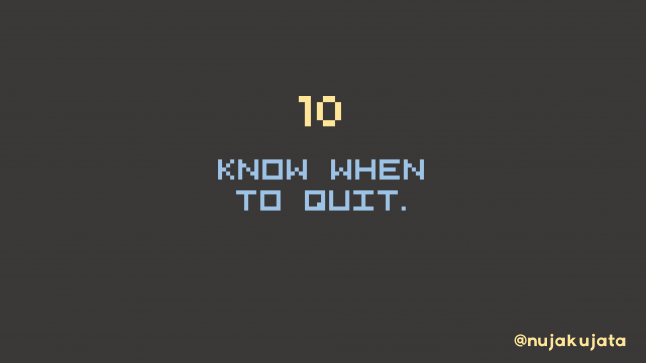 Never stop making. Never stop attending events, conferences or local meetups. Never stop taking the time to learn new things, experiment and research something different. By doing so you are expanding your skills, holding on to a profitable work ethic and demonstrating the fundamental skills necessary to keep going in the industry.