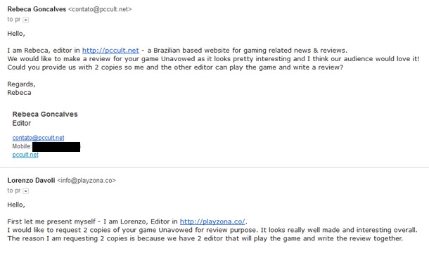 What’s the harm, then, in sending keys to anyone who asks? Worst case scenario, your game ends up being resold on a gray market site like G2A. That’s not the end of the world. The bigger problem with key scammers is this: when you realize you’ve been duped, it makes you cynical and suspicious and unwilling to trust the next person who asks for a review copy. And that attitude can hurt your chances of getting coverage if the next person who asks is the real deal.