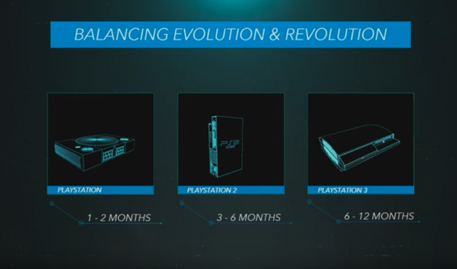 Previous console generation leaps, as shown in the picture above, required more and more developer time to even get familiar with each system before being able to dive into the meat of the game development process.