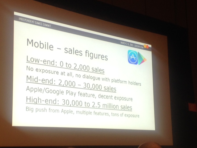 Mobile is as tough as ever, being a mature, crowded market. Rose said about 500 games launched every day on iOS in 2014, and 250 a day on Android. "On Steam, at least you get featured in the new releases at least," he said, comparing PC to the mobile market. "That's not the case on mobile…you have to make [exposure] happen yourself."