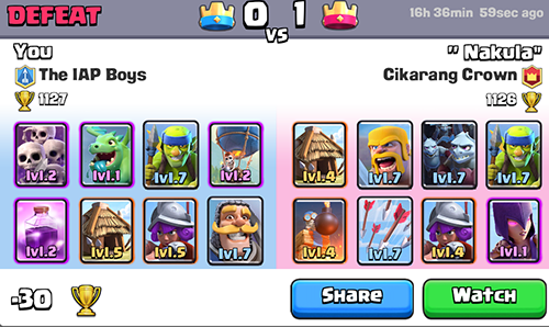 And yet the game is fun! I enjoy what they throw at me. I get frustrated sometimes when I get steamrolled, because this is often clearly more powerful players thrown against me. But I sometimes win those matches. Supercell has balanced how often I should win or lose. And so I keep playing. I love the joy of a last second victory. People have a lot of different deck types to battle. I get the satisfaction or frustration of questioning my deck design, my play, or the numbers. I get frustrated at a draw, when I earn nothing for staving off my opponent. It's good, though.