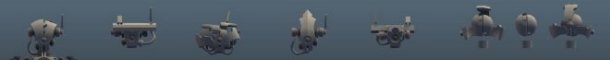 The first step towards actually making something, once reference was set up, was blocking out a 3D form in Maya using simple primitives and keeping things low detail. Often if this stage went well the geometry could be reused for the final low polygon asset. Then I’d take this base mesh into zBrush and play with the shapes, maybe add things that were more awkward to create in Maya. If I was feeling really fancy, I might do a paintover.