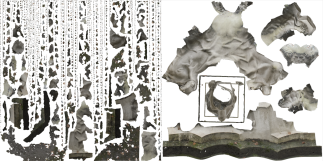 Remake can handle large meshes better than other software, and it’s great for manual polygon selection and deletion, and closing holes, not to mention that the interface is simple and intuitive to use. The mesh was then imported into ZBrush to re-sculpt those missing details, and later imported back into Agisoft.