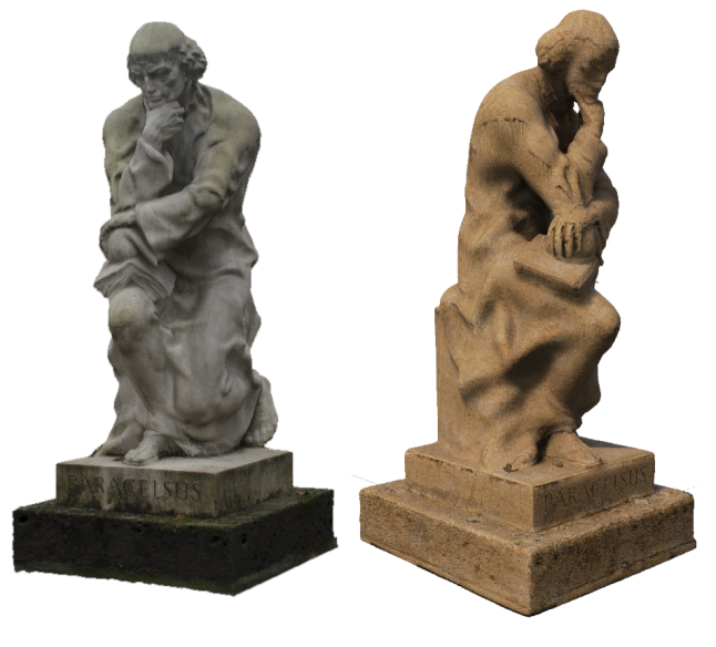 I was attending a 3D scanning conference in Salzburg (Austria), and I took it as an opportunity to do some sight-seeing and scan a few monuments. Here’s a Paracelsus statue that I scanned in the park. I didn’t take a lot of pictures (55 photos in total). I just took a loop around the statue, then took a few close-up pictures to get a higher resolution texture.