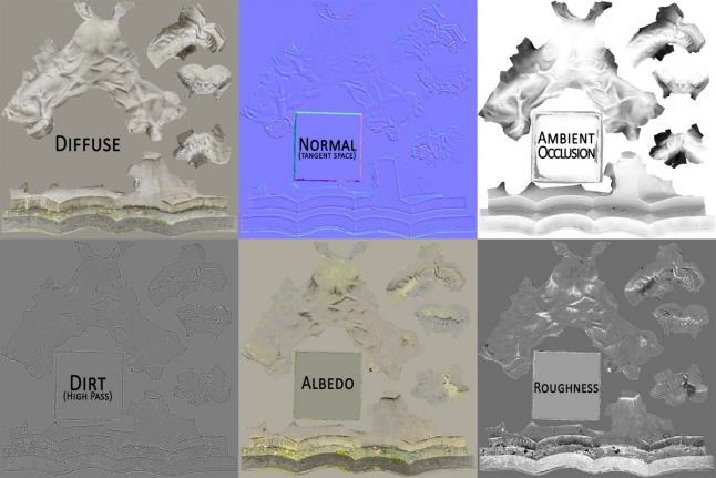 When removing features from a texture, it’s hard to know when to stop, and a way to answer this would be to keep in mind that everything we remove must be added later, whether by blending textures, or the game engine itself can calculate this information for you.