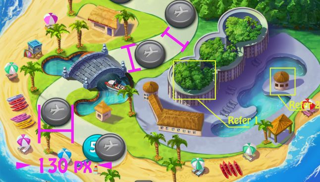 As saga map are made up by zones, there would be a rough number of levels in a zone. With the size of level nodes, and node density decided, it could easily work out the length of a zone. It’s usually measured by screen height, for example, x1.5 and x2. Of no doubt the length of a zone affects budget very much. Generally, a map zone of x1.5 screen length carries 15~25 levels.