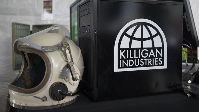 An Arduino controller inside the phone transforms the keypad into a USB keyboard that sends input to the game. The game’s audio is split into two channels - the game channel plays all the environment audio through speakers, and the phone channel plays the custom support audio through the phone receiver itself. Two arcade buttons mounted to the case provide additional game functionality, including a direct connection to Killigan Industries Emergency Services.
