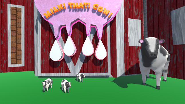 We were all brainstorming different ideas for a game using an alternate controller for a college assignment and the idea of using cow udders came up. We thought it was a really funny idea and decided to iterate on the concept until we had the 2 vs 2 cow milking simulator gameshow.