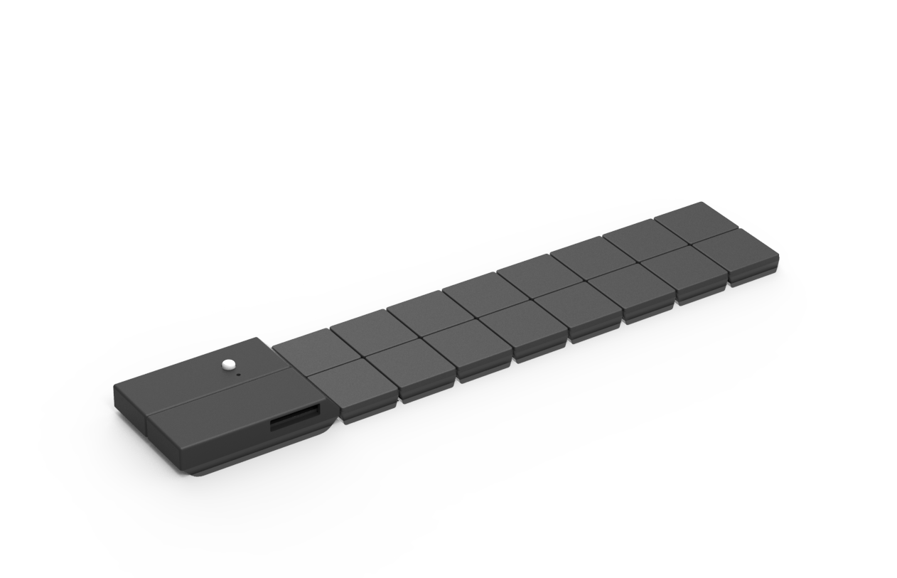 The Wiz is a transformable wireless controller. Imagine a strip of buttons that can be reconfigured to match any keyboard, mouse or mobile inputs. Now imagine that those buttons can be bent and folded or formed into a loop that can be worn around the wrist. The Wiz has motion control as well as tactile input options, and can work with a variety of game types.
