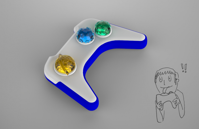 Our controller is a gamepad with three ice pops you lick to simulate button presses. The ice pops use creative flavors designed to work in harmony.
