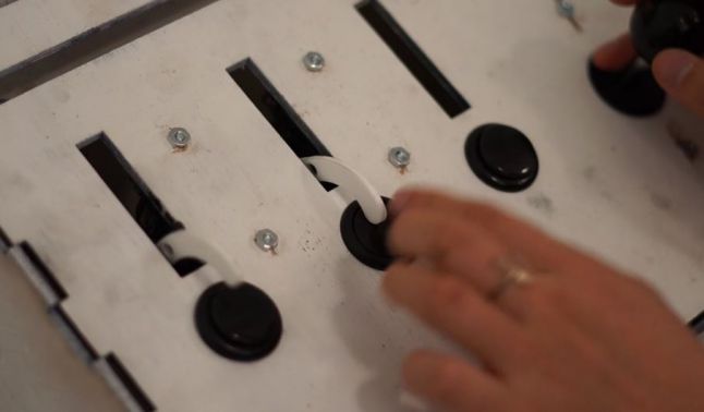 Victor the Loser appears to be a normal controller and screen, but there are slots where things can pop out to keep you from pressing a button, block the screen, and generally act like a digital little brother, pouting about its loss by interfering with the play field.