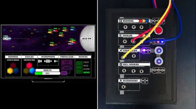 Too Many Captains (And Not Enough Wire) will involve a lot of wire-swapping (and communication between friends) to safely pilot a starship through dangerous territory. One player is given access to a control panel and only enough wire to power a few ship functions (shields, weapons, etc), but only knows what to hook up based on what other players tell them to as they won't be looking at the screen. This turns ship piloting into a frantic game of teamwork and communication as players work their way through space.
