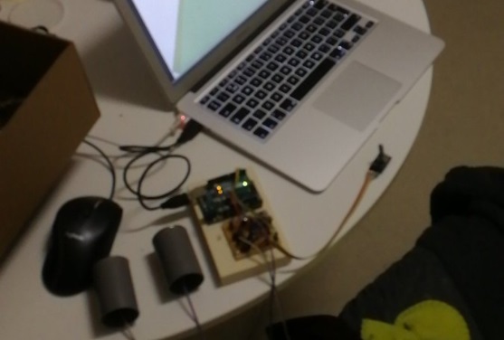 The arcade is build out of wood. For the blow sensors, I used 2 small speakers that I use as if they were microphones. So, you actually blow directly on the speakers' membrane which creates a tiny electrical signal. I amplify this so the Arduino can read it.