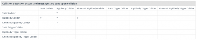 Table from: https://docs.unity3d.com/Manual/CollidersOverview.html