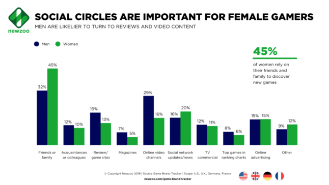 Video game analyst Newzoo has released a new report that looks at how men and women discover and choose games in the West.