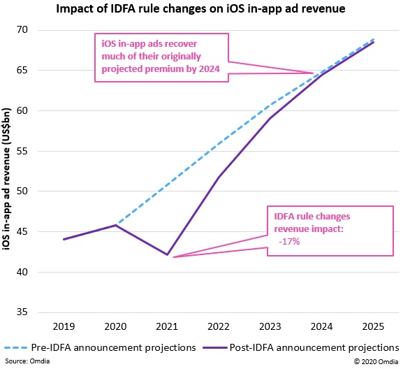 With that change now nearly upon us, analysts at Omdia project a 17 percent drop in the value of the in-app ad market on iOS for this year.