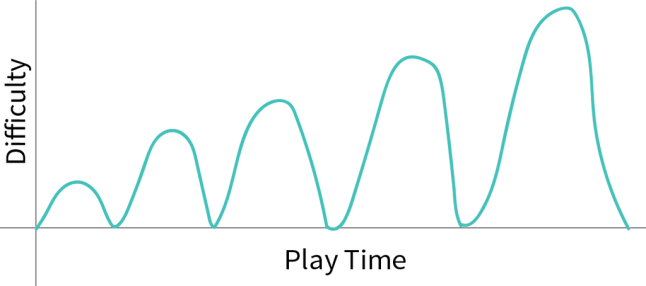 The above graph is an abstract difficulty curve which displays a sequence of tense and release cycles of increasing difficulty. This curve would form the underlying foundation of our experience.