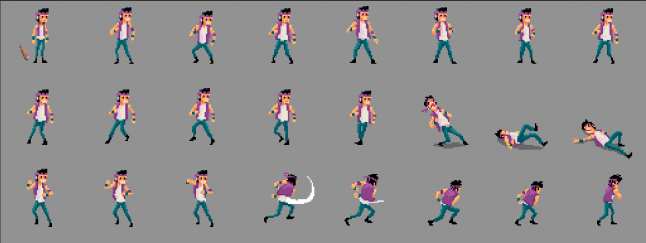 For enemies, watching other games we found one thing in common: All enemies are facing you (the player), so to optimize, we made only one point of view (¾ right, left will work as a mirror). Our combat is a soft component of the game and it worked well without more points of view. That allowed us to introduce more types of enemies and bring variety to the game.