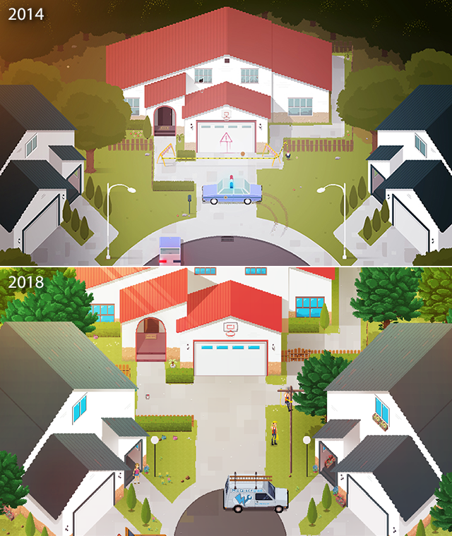 The first scene that I designed for the Crossing Souls environment already contained the main directives of the art direction that we were going to follow: orthogonal perspective, "plausible" proportions between the elements of the world and a broad color palette that would lead to building it with a lot of detail.