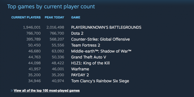 The fact Battlegrounds has attracted another 700,000 users since then is a testament to the game's unwavering popularity, and as the chart below shows, there's now a huge gulf between Battlegrounds and Dota 2 in terms of players.