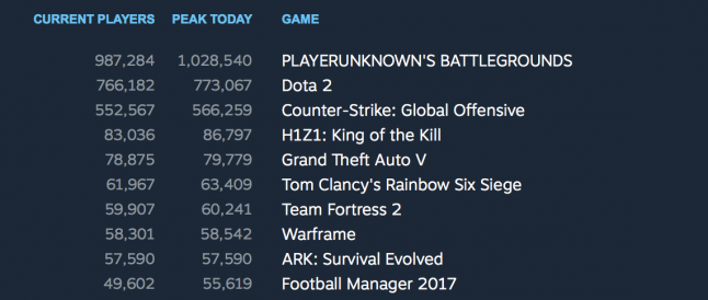 The popular last-man-standing battle royale title hit the milestone today when exactly 1,028,540 million players logged in to test their wits against each other.