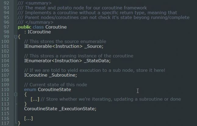 This post is a follow up to the article Logic over Time in which I described why new language features, such as coroutines, can help game programmers write more readable and robust state machines. In this article, I’ll talk in more details about the specifics of my implementation of coroutines and its advantages and uses beyond state machines themselves. Specifically, I'll talk about concurrency and synchronization.