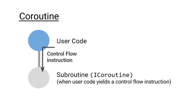 The Coroutine node is the main workhorse of the framework. It is the node where user code is executed. The coroutine node is the one that understands the ‘Instructions’ I mentioned earlier. It can be represented like this:
