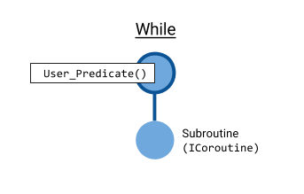The subroutine is null until a control-flow instruction is yield-ed and tells the coroutine node how to create the child node. In the case of a CallInstruction as seen earlier, the Coroutine.Update() method sets a flag indicating that instead of iterating its iterator (the user code), it should instead create and then execute a child node. Once that child node completes, it can reset the flag and continue iterating its iterator (the user code). In most cases, the subroutine it creates is itself an iterator-based Coroutine, but in other cases, such as with ExecuteWhile(...), it is a node of a different type.