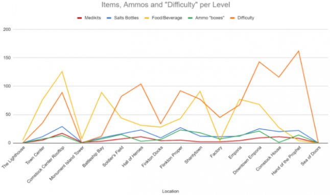 “Difficulty” is a concept introduced to simplify the comparison with other game’s elements: showing every enemy’s curve would be confusing and overwhelming, but at the same time summing the number of enemies wouldn’t be fair, since a Handyman isn’t as challenging as a Citizen.