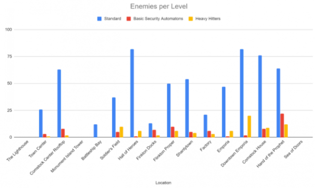 This is why, despite the standard enemies’ curve not exponentially growing over locations, the challenge is provided and increased by the growth and combination of Heavy Hitters’ and BSA’s curves.
