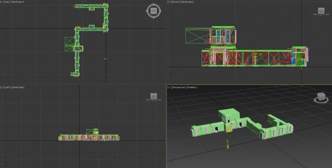 A level designer's view of P.T.'s memorable hallway, extracted from the game's code by fans