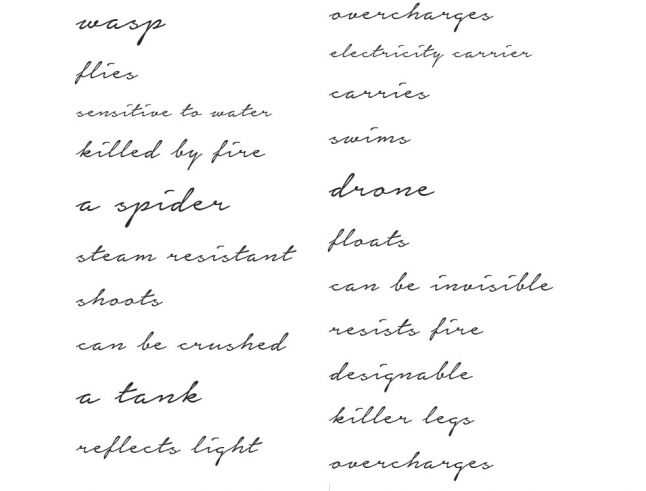 At this stage we were rumbling about anything, wondering more in the insects area. Getting inspiration from the real creatures helped us come up with a lot of capabilities and weaknesses. For instance a wasp can fly but it can't swim. However we had no restrictions, in terms of consistency, at this stage.