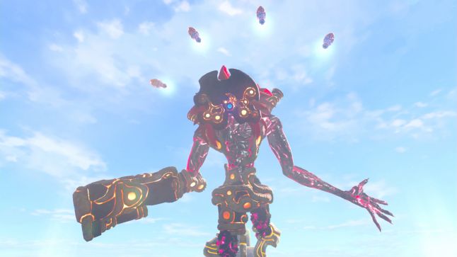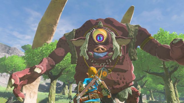 The game also employs Montessori learning methods in its boss battles. There are Overworld Bosses and Dungeon Bosses, but they all behave in the same basic way: they come at you with a consistent set of attacks. Players are trained to recognize this early on through chance encounters with Breath of the Wild’s relatively harmless Overworld Bosses. (They exist in the game’s open world, so you can always run away if death seems inevitable). These are mostly various types of Hinox and Talus. Their straightforward smashing attacks are performed rhythmically, so you can figure out their patterns of behavior pretty fast. This allows you to come up with a set of strategies for self-defense. The best ones involve taking advantage of another feature characterizing Breath of the Wild’s bosses: the weak spot. Shoot an arrow into the eye of a Hinox and you’ll deal it extra damage.