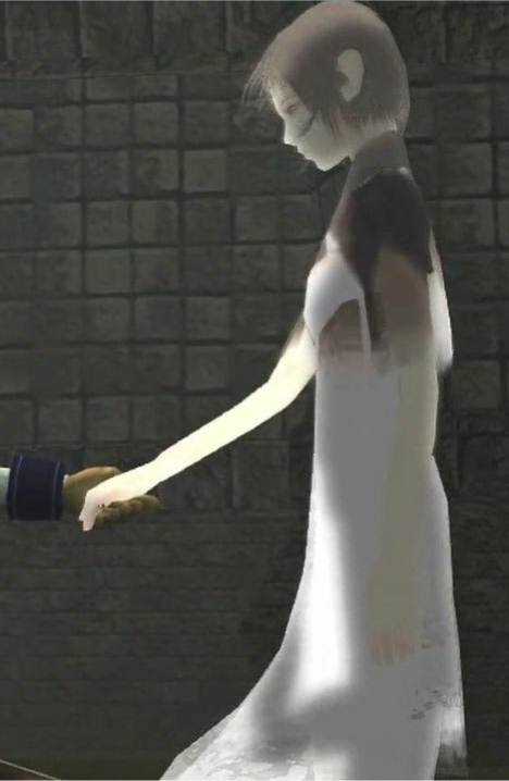 Illustrating this notion, let’s remember Ico's Yorda, one of the most exquisite NPCs in the history of video games. This most graceful character successfully conveys a social presence by implementing certain contingencies. She turns her head in direction of Ico, she turns her head in direction of an immediate danger, or slightly steps back when Ico is approaching too close from her. Remark however that she possesses some measure of autonomy. Her behavior is not being perfectly contingent on external cues. You will see her walk away at some occasions. This is a very important property if you want to convey the illusion of freedom and self-sufficiency in a companion.