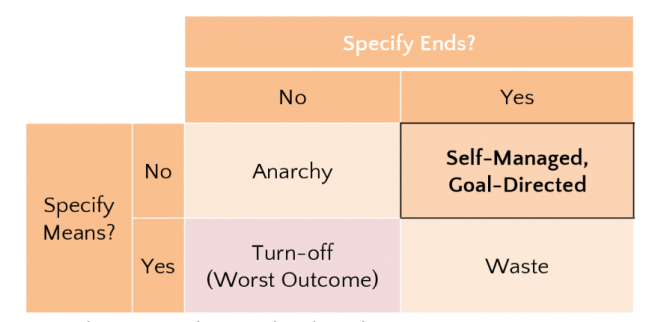 The obvious danger in communicating ends without means is that the team-mate almost certainly won’t implement the solution that you would.Unless you happen to be extremely in-tune, they will have their own ideas, their own approach, and will pursue the goal you set in their own way. But… that’s not just okay and valid. That’s value. You have to accept that, up-front, or else this will all collapse on you later as your team comes to realize they need to read your mind in order to get approval.