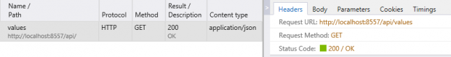 The root URL of the web service is just not routed to any code in our application. If we append /api/values to our URL, we should indeed get a response from our local web service.