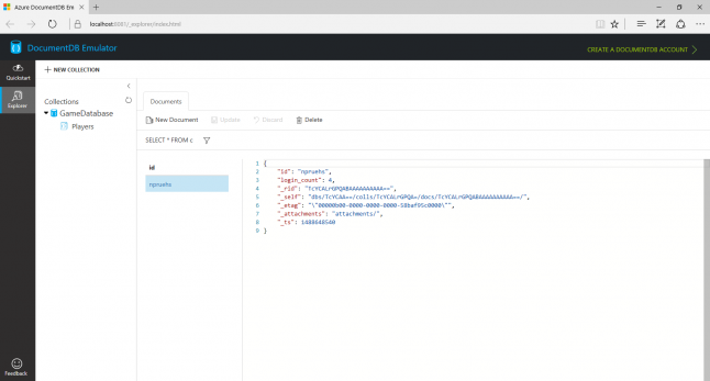 We can also verify the result in the DocumentDB Emulator Explorer that opened up earlier, by refreshing its view: