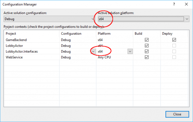 Hit F5 to build and run our application. If you should run into any compile errors for the web service, make sure you are building the AnyCPU configuration for the LobbyActor.Interfaces project.