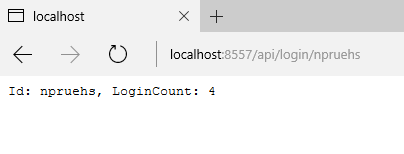If we call any login URL for our application now, such as http://localhost:8557/api/login/npruehs, we can happily see the results: