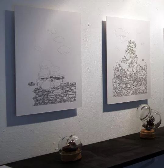 Tegroeg’s exhibit was a series of objects contained in glass globes called “Idea Globes.” But what de Jongh found himself staring at were the black-and-white drawings hanging behind the globes, in which he saw “worlds of tiny people doing everything and nothing at the same time, yet many little stories unfolding.” It gave de Jongh an idea that prompted him to jokingly tell Tegroeg that they should make a game together.