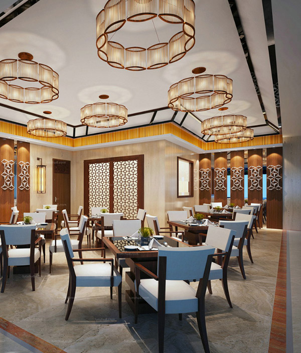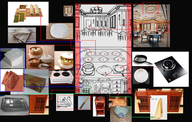 The first thing is to decide the general interior design style of the restaurant. We show the client pictures of many stylized restaurants around China, along with many 3D interior designs: