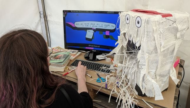 The game uses this to confront the player with how they feel about that destruction, reflect on other things they may have lost, and lets them play out the idea of growing after a period of grief. The book that they damage becomes a unique and personal object - their destructive acts become creative. Using a physical book to act out the emotions behind a story helps players feel what that means to them on a physical level.