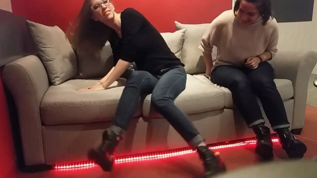 LED lights and audio serve as multimedia feedback as players interact with the couch cushions, which act as the game’s controller. Hellcouch plays with the way we interact with each other on couches, in video games, and in public spaces, challenging the implicit rules of these social spaces in order to create a silly, unexpected experience for players and spectators alike.