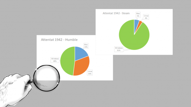 Here’s a breakdown of which desktop platforms Attentat 1942 is run on Steam and Humble (DRM free). It is important to mention that our sales on Humble Store are approx. 20x smaller than on Steam.