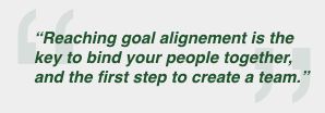 What is the common factor between all those teams? Members of a sport team or an orchestra share the same goal. In order for the group to become a team, everybody needs to wish to win the game or deliver the best performance of a musical piece. Reaching goal alignement is the key to binding your people together, and the first step to create a team.