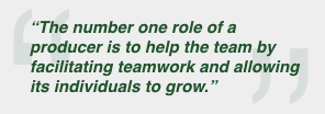 The number one role of a producer is to help the team by facilitating teamwork and allowing its individuals to grow.